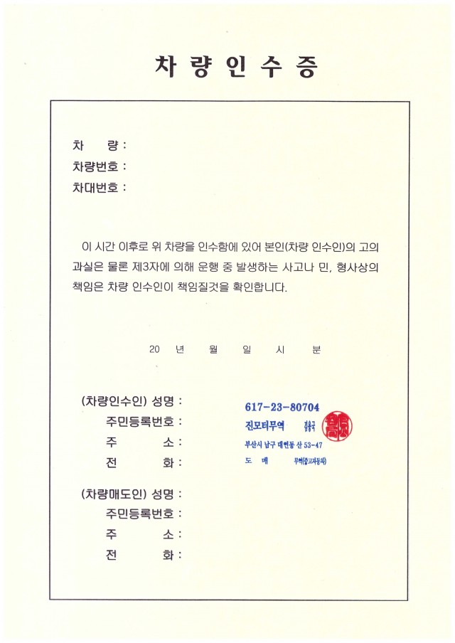 차량인수증